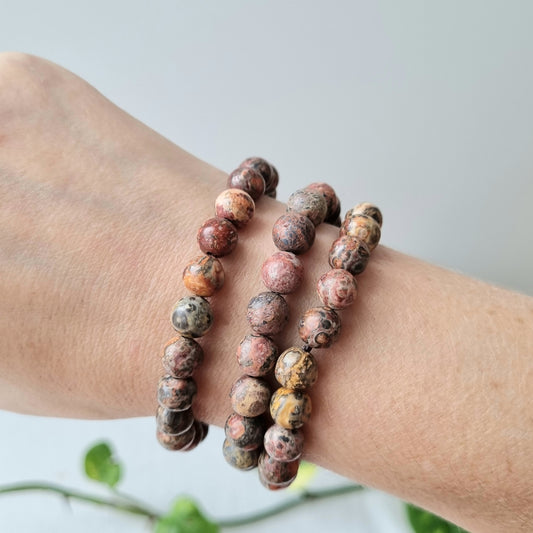 Leopard Skin Jasper Round Bead Bracelet - 8mm