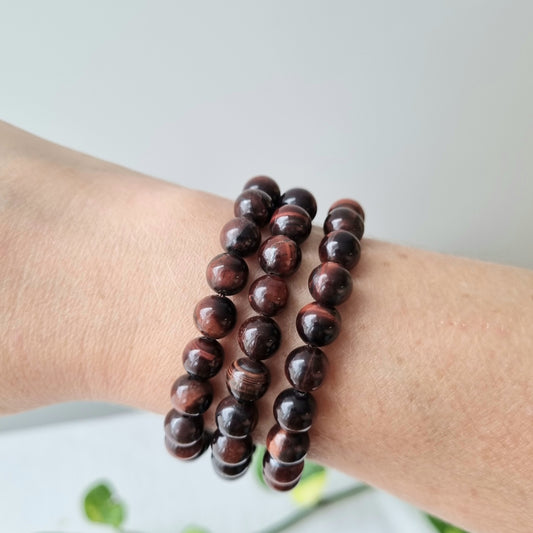 Red Tigers Eye Round Bead Bracelet - 8mm