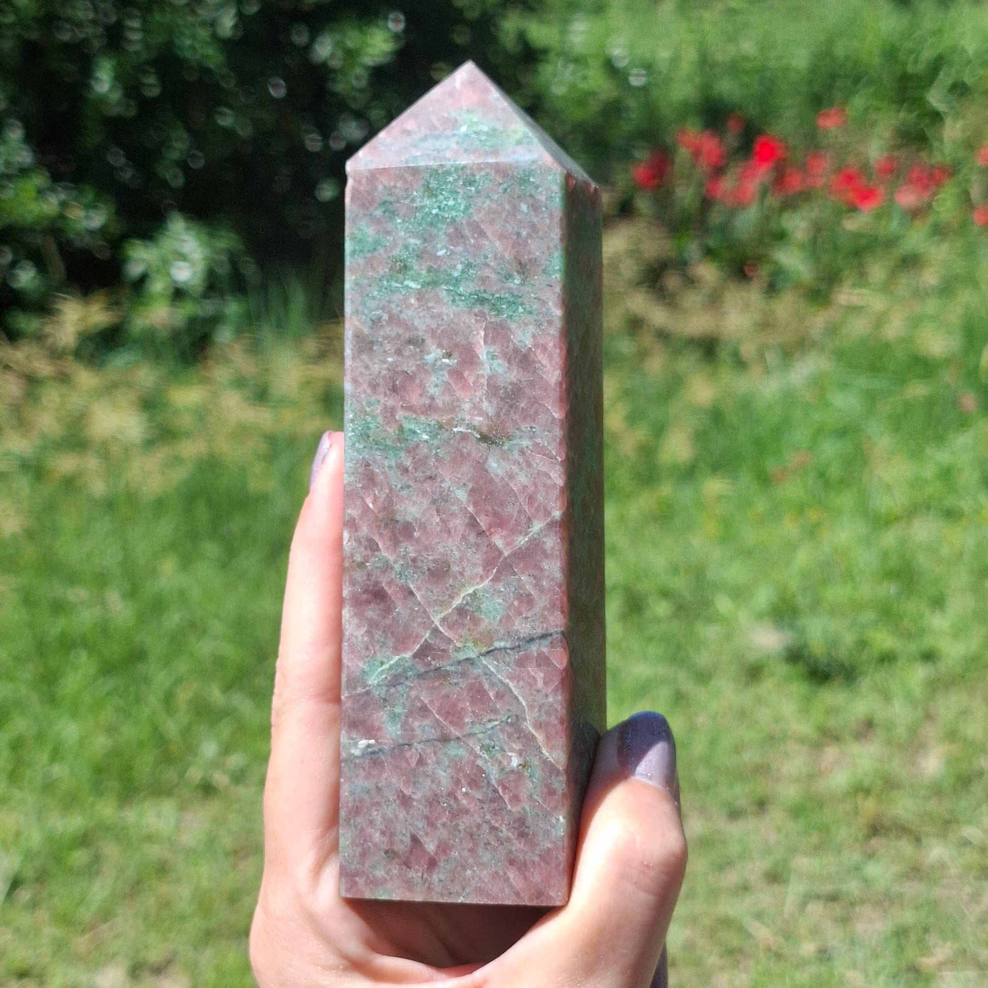 Eclogite (Omphite in Red Garnet) Tower - 579g